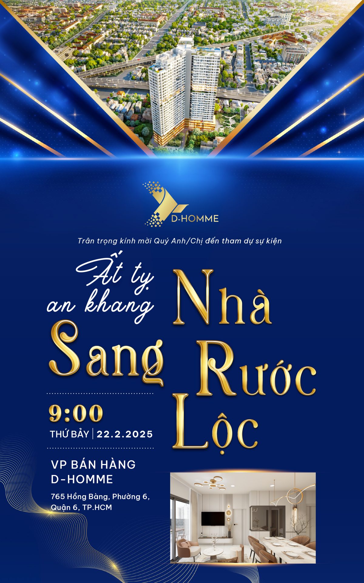 Nhà sang như ý, quà vàng mê ly cùng vô vàn những trải nghiệm ấn tượng đang chờ đón Quý Khách hàng trong sự kiện mở bán căn hộ D-Homme “ẤT TỴ AN KHANG – NHÀ SANG RƯỚC LỘC” ————————– Thời gian: 9:00 – Thứ Bảy 22.02.2025 Địa điểm: Văn phòng bán hàng D-Homme, 765 […]